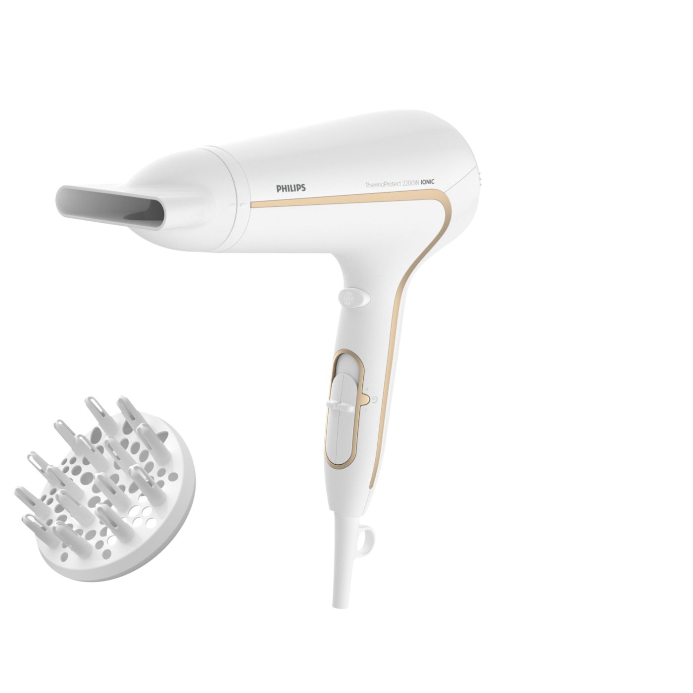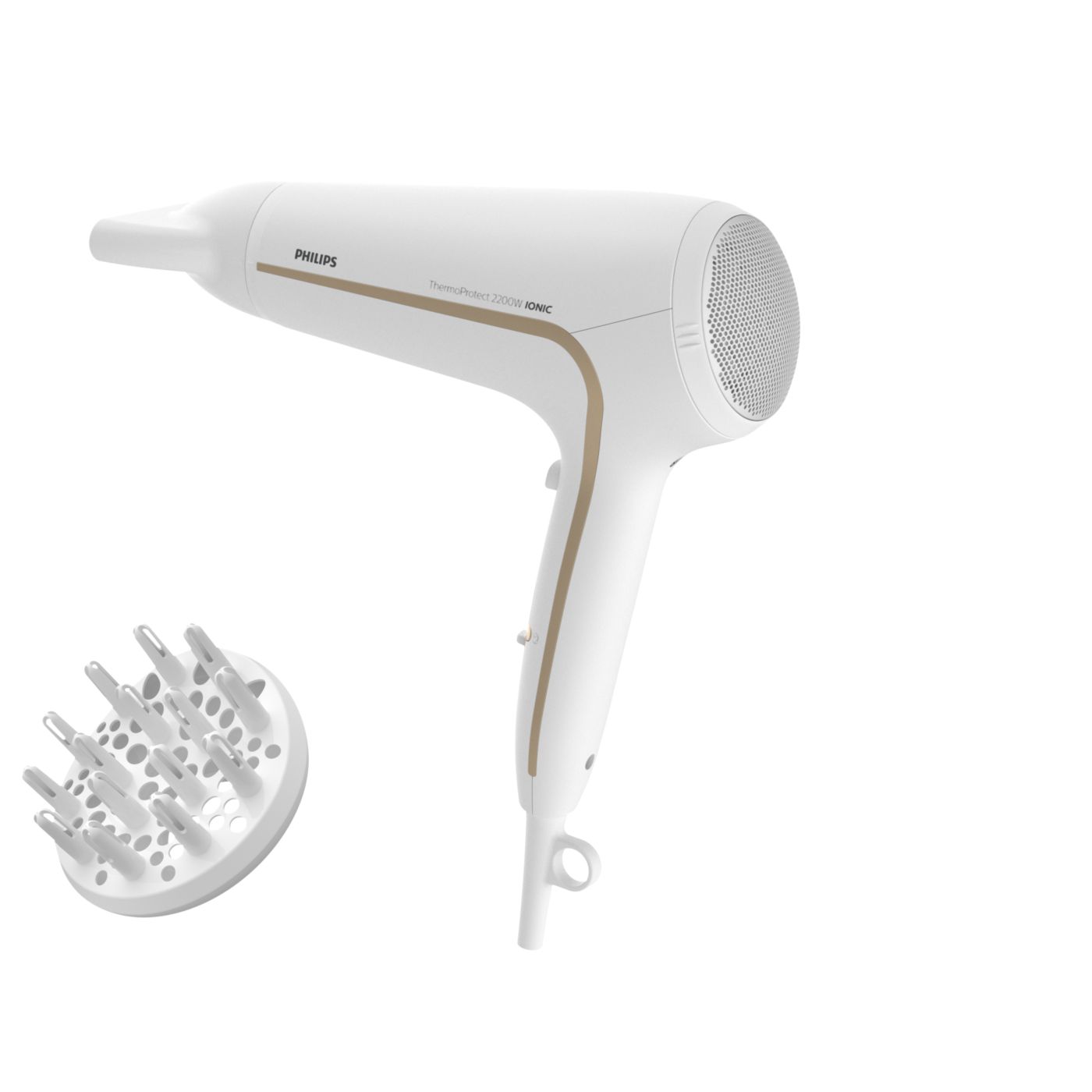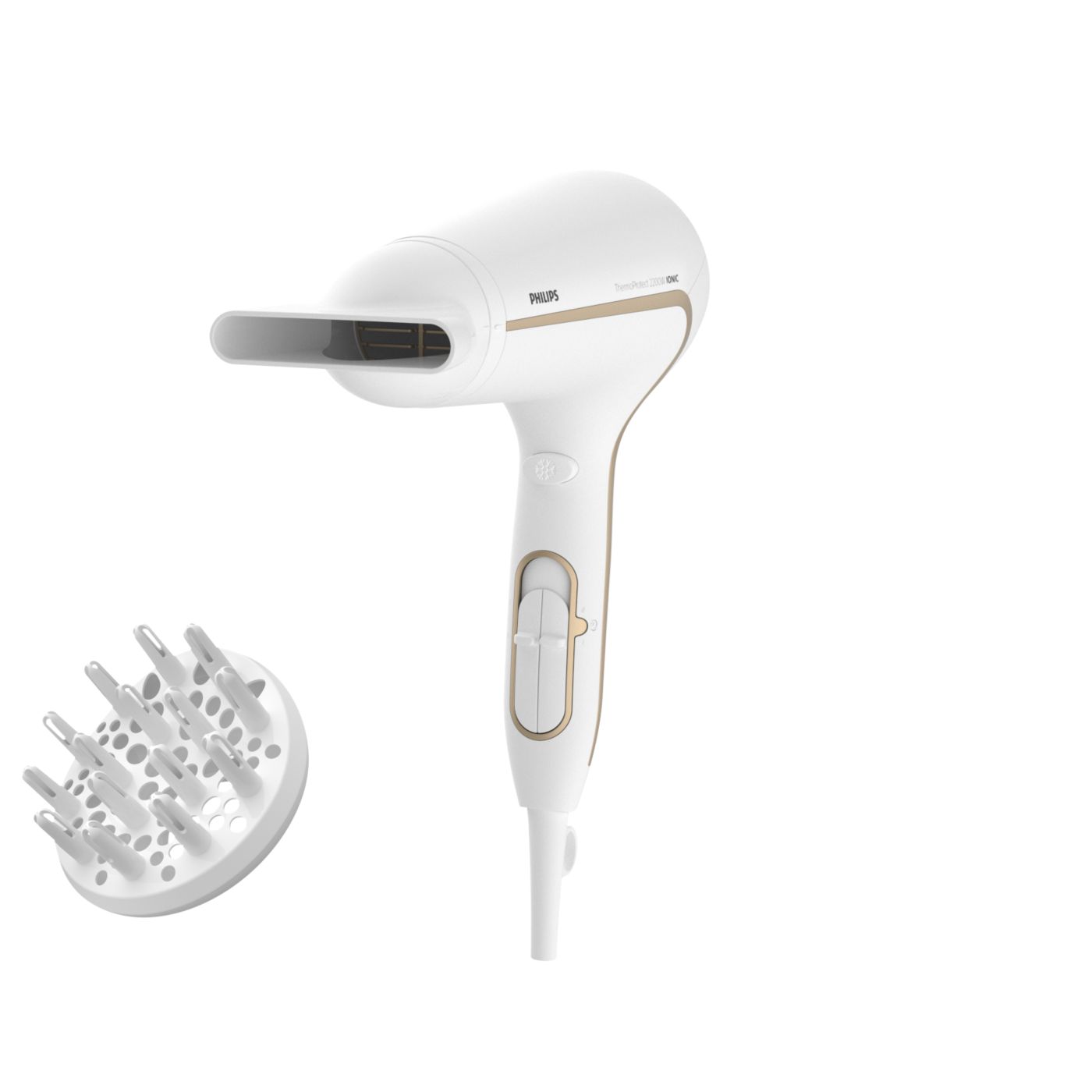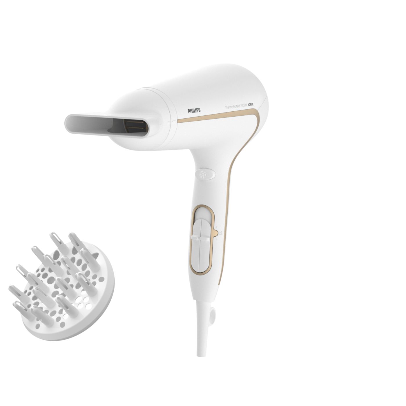 Protegé tu cabello y disfrutá de un secado rápido. Este secador de cabello posee variados ajustes de velocidad y temperatura. Incluye la función ThermoProtect para obtener un secado rápido y a una temperatura que siempre cuida tu cabello, así como la función Ionic Care para lograr más brillo y menos frizz.