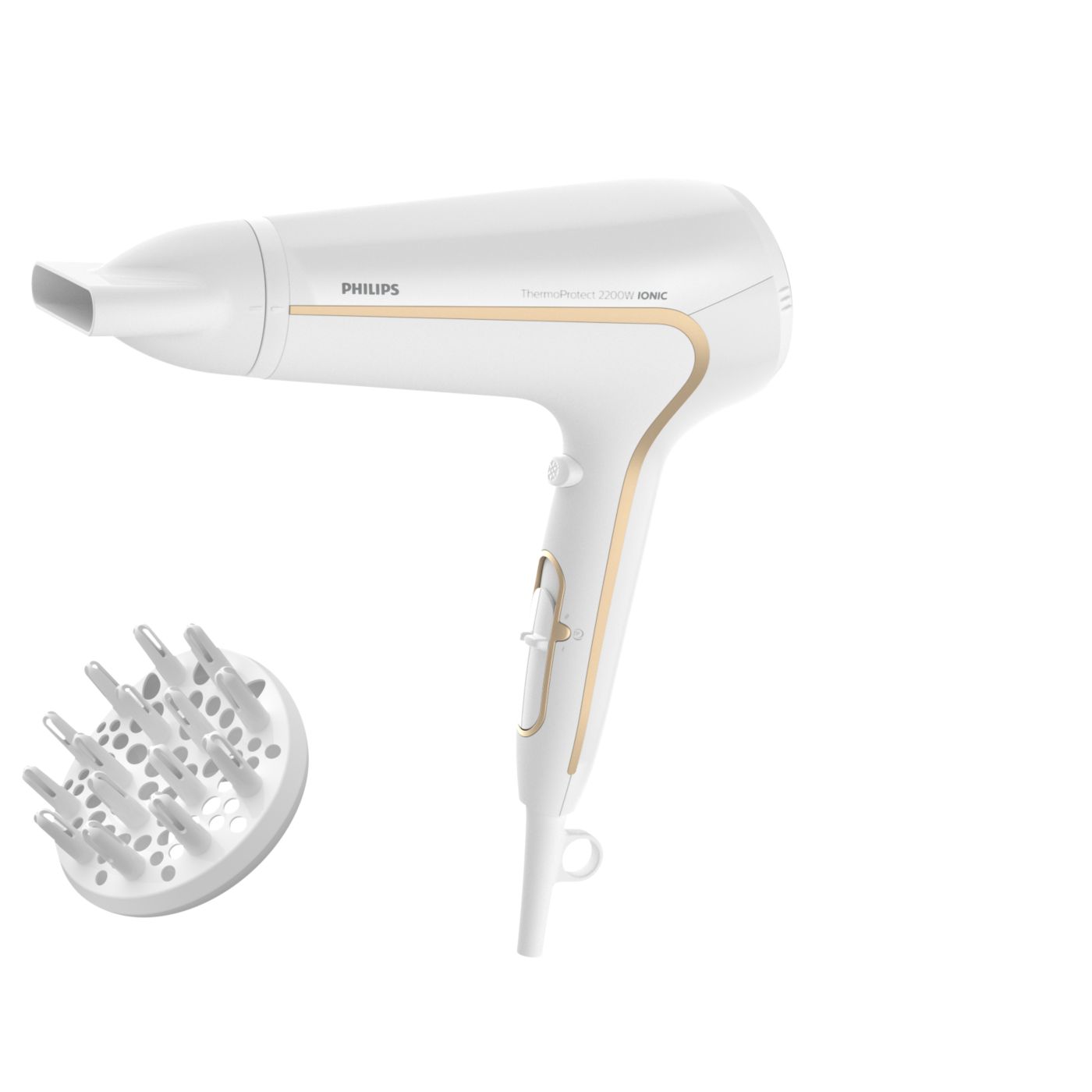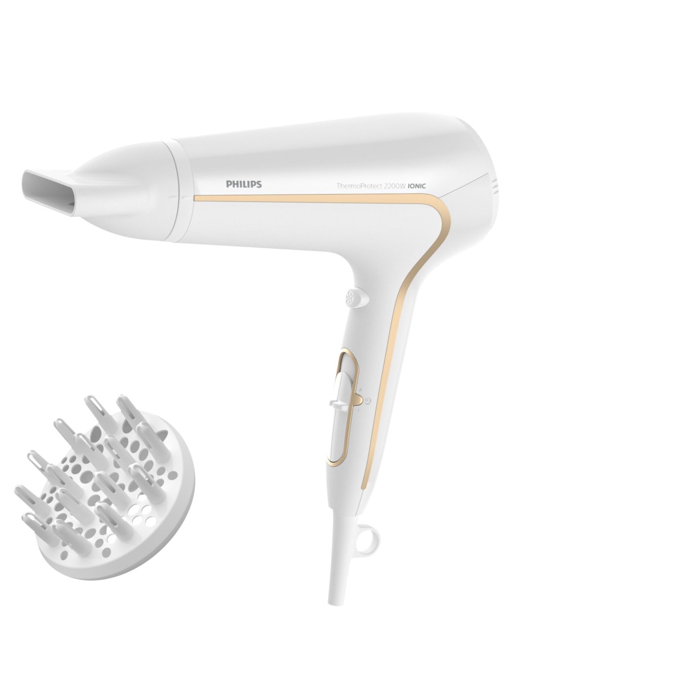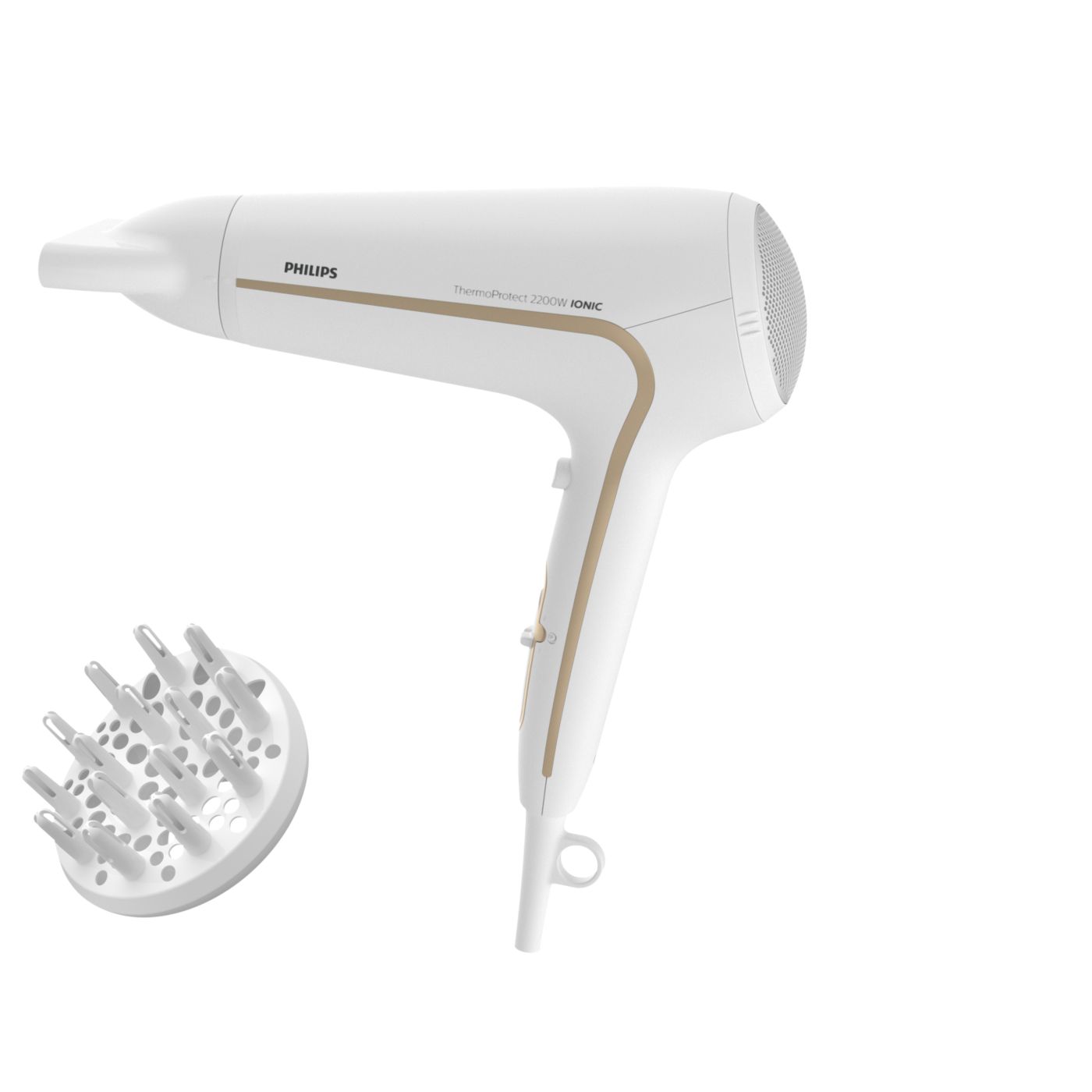 Protegé tu cabello y disfrutá de un secado rápido. Este secador de cabello posee variados ajustes de velocidad y temperatura. Incluye la función ThermoProtect para obtener un secado rápido y a una temperatura que siempre cuida tu cabello, así como la función Ionic Care para lograr más brillo y menos frizz.