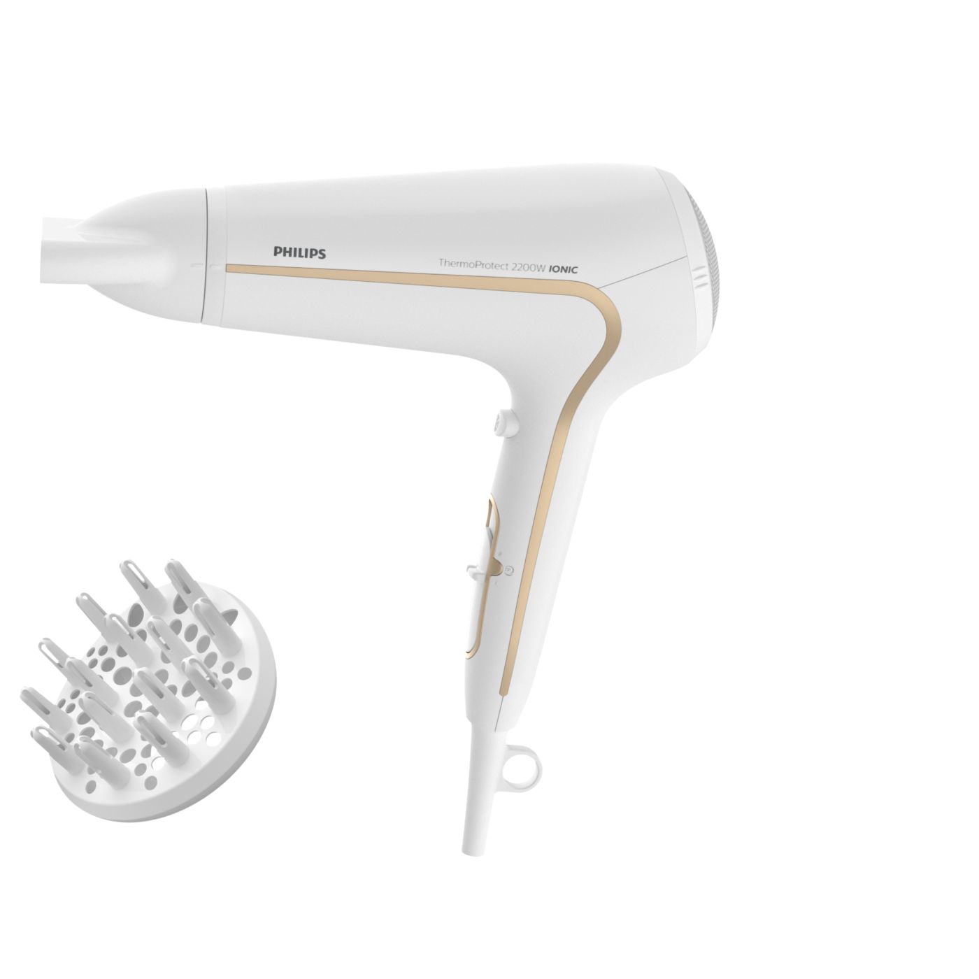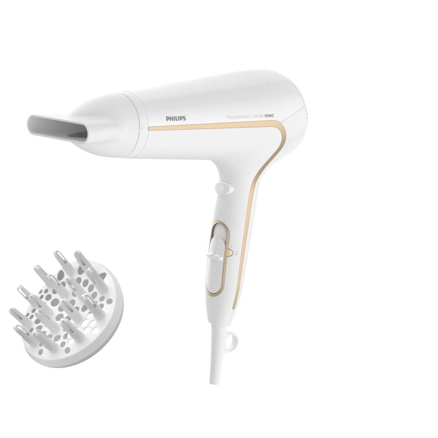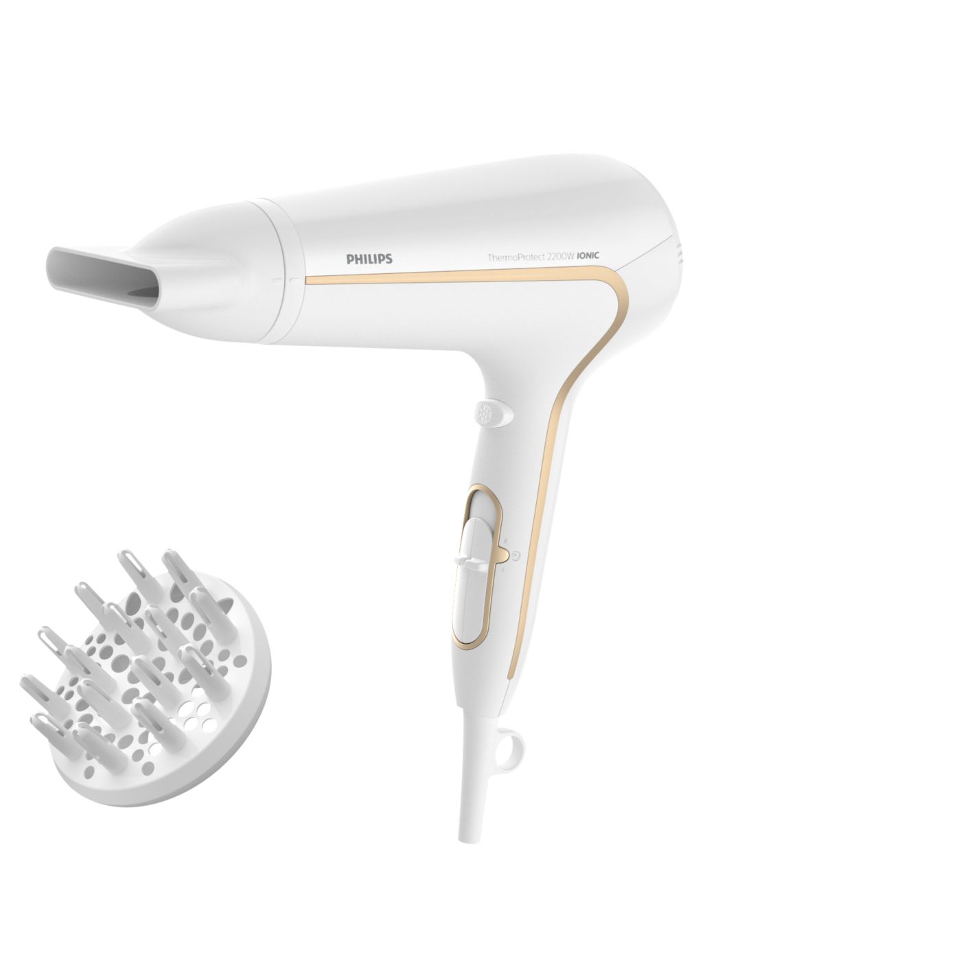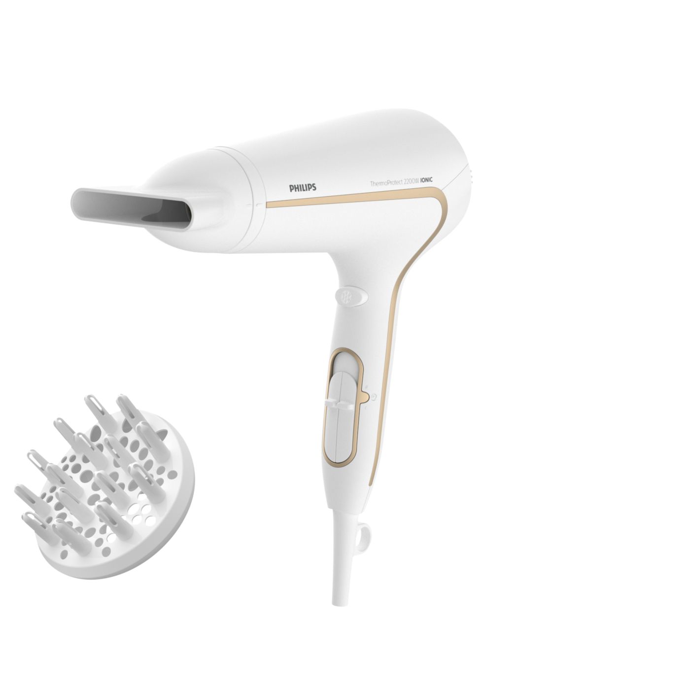 Protegé tu cabello y disfrutá de un secado rápido. Este secador de cabello posee variados ajustes de velocidad y temperatura. Incluye la función ThermoProtect para obtener un secado rápido y a una temperatura que siempre cuida tu cabello, así como la función Ionic Care para lograr más brillo y menos frizz.