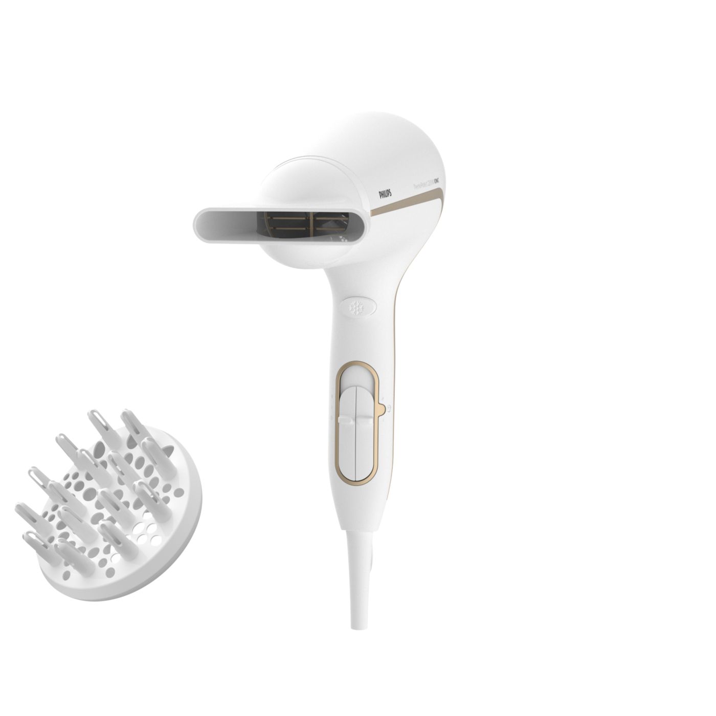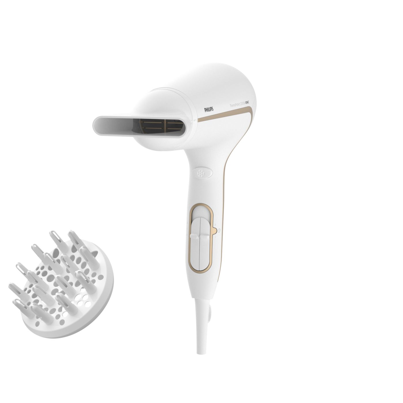 La temperatura ThermoProtect proporciona un ajuste óptimo de calor durante el secado y constituye una protección adicional contra el sobrecalentamiento del pelo. Disfrutá del mismo flujo potente de aire y conseguí resultados óptimos, sin descuidar la salud de tu cabello.