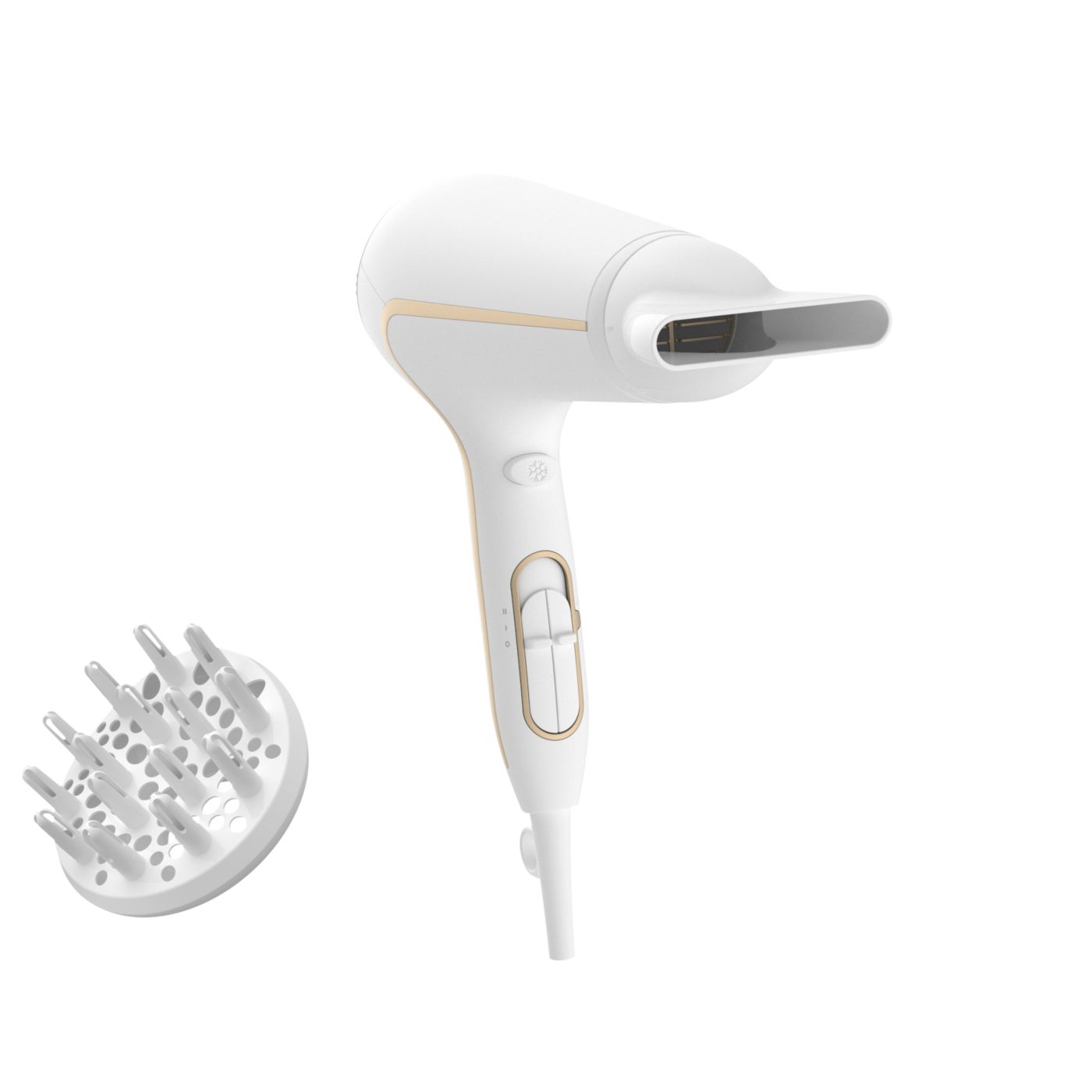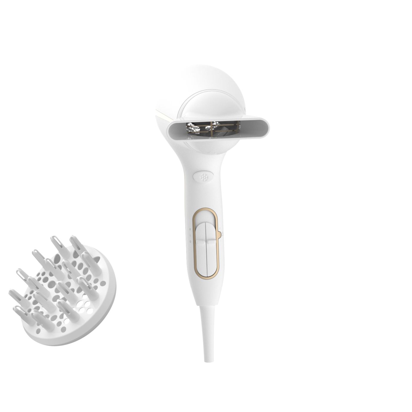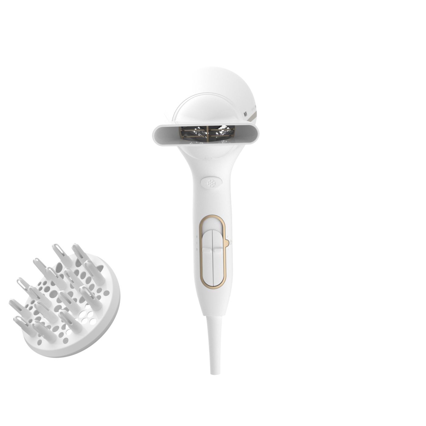 El difusor de volumen tiene un diseño asimétrico exclusivo contorneado para ajustarse a la cabeza, lo que facilita su uso y lo hace más intuitivo. El difusor también distribuye el flujo de aire en el cabello para mantenerlo saludable, aumentar el volumen y reducir la estática. Para mejores resultados, sostenelo cerca del área de la raíz y dejá que las puntas del difusor creen volumen, agreguen vida y definan los rizos.