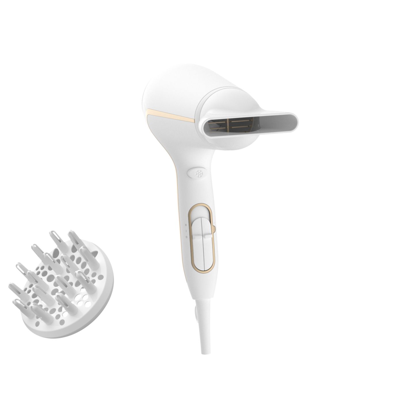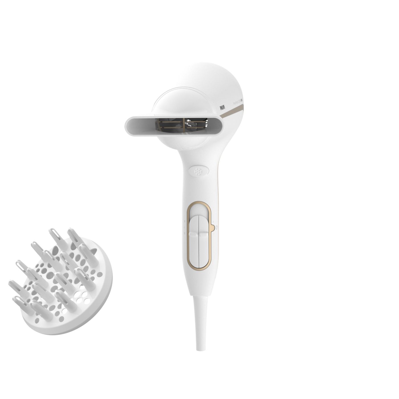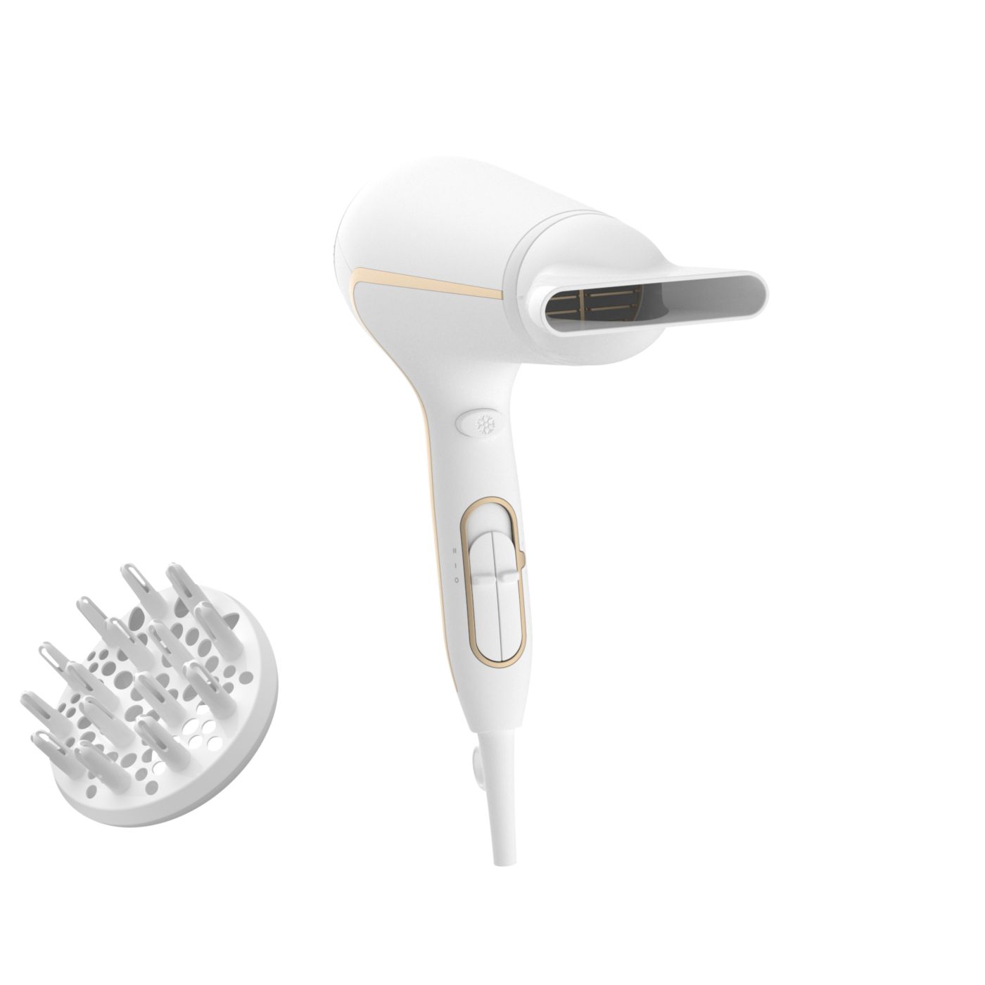 El difusor de volumen tiene un diseño asimétrico exclusivo contorneado para ajustarse a la cabeza, lo que facilita su uso y lo hace más intuitivo. El difusor también distribuye el flujo de aire en el cabello para mantenerlo saludable, aumentar el volumen y reducir la estática. Para mejores resultados, sostenelo cerca del área de la raíz y dejá que las puntas del difusor creen volumen, agreguen vida y definan los rizos.