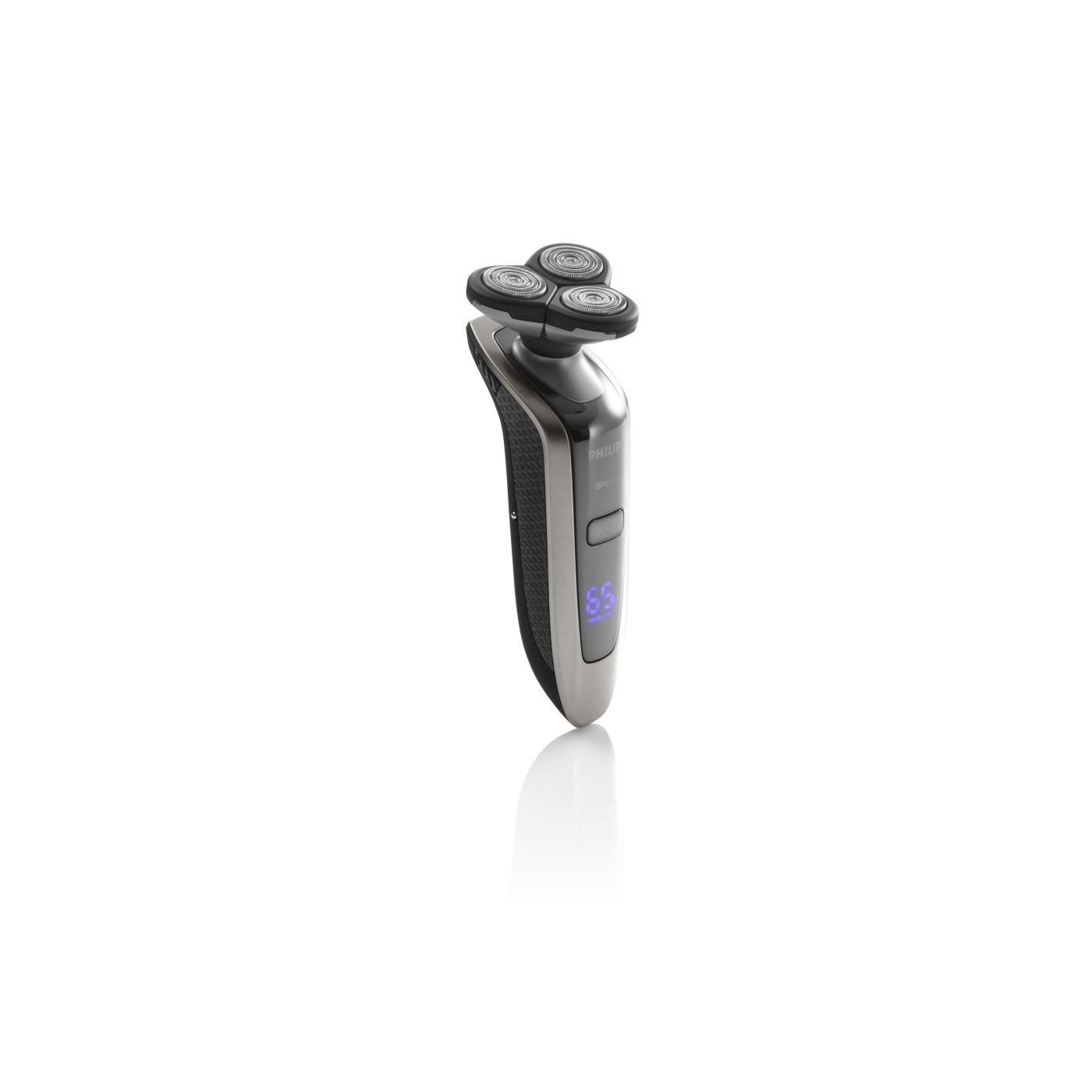 Tres cabezales que se flexionan independientemente, en una unidad de afeitado que pivota en todas las direcciones. Esta combinación única garantiza un contacto óptimo con la piel en zonas curvas, para atrapar hasta los pelos más difíciles del cuello.